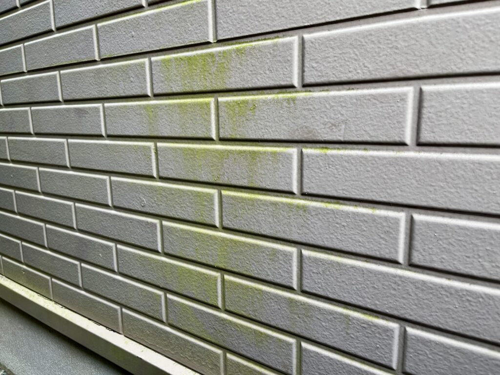 北側の外壁や日当たりの悪い場所で、緑色や黒っぽい汚れが目立つ場合は、カビ・苔・藻の可能性があります。